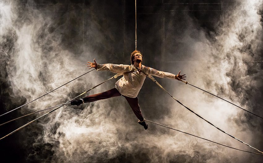 Хореография. Всё перечисленное требует особого хореографического рисунка. Ломанные движения, высокие поддержки на грани человеческих возможностей и массовые сцены помогают маэстро добиваться поставленной цели и вызывать как восторг зрителей, так и желание труппы развиваться дальше и покорять новые вершины. Особо хочется отметить несколько артистов труппы, по-настоящему создавших эти долгожданные гастроли и раскрывшихся в различных образах. Наблюдая за М. Абашовой, Л. Андреевой, С. Волобуевым и О. Габышевым, начинаешь понимать, почему эта театральная кампания, исполнившейся всего 40 лет так популярна во всем мире и почему все их выступления проходят с таким аншлагом.